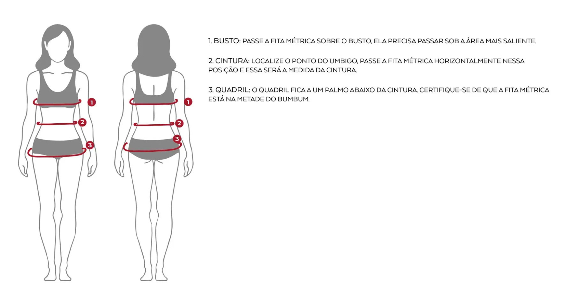 | Tamanho | Cintura | Quadril |